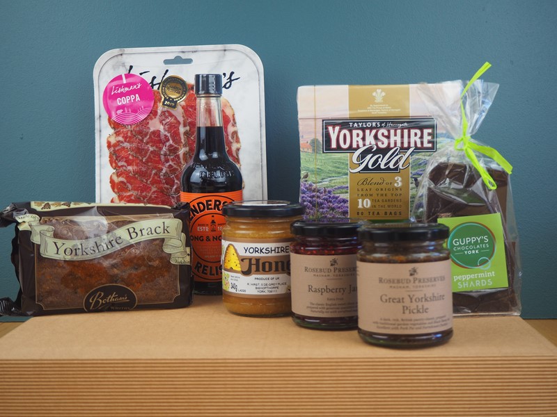 This hamper includes; Yorkshire gold tea, Lishman’s coppa, Henderson’s relish, Yorkshire honey, Rosebud jam and chutney, Guppy’s chocolates and Yorkshire Brack.